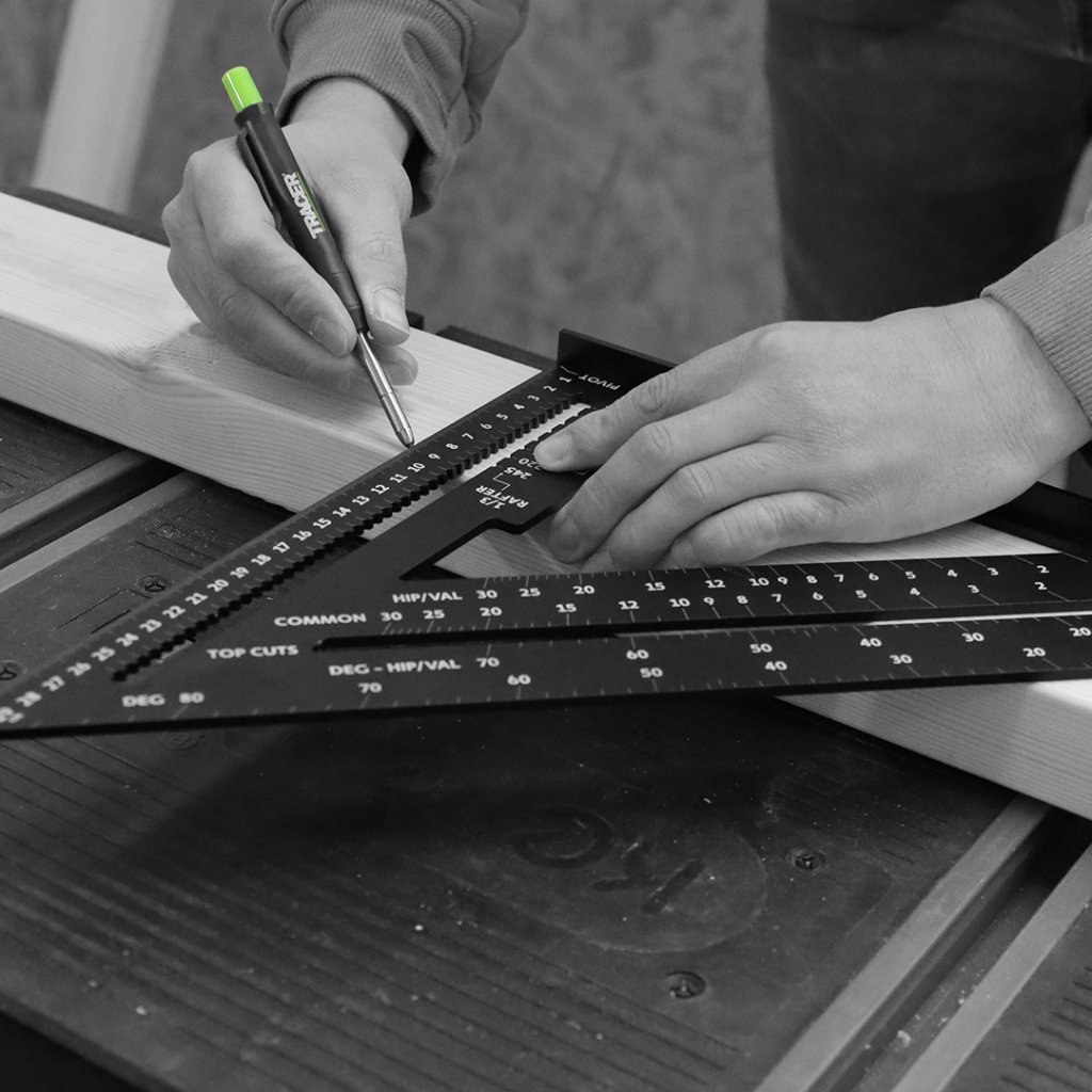 Tesařský úhelník značky TRACER je ideální pro profesionální řemeslníky. Úhelník je vybaven pro práci v různorodém prostředí a umožňují tak snadno dokončit více úkolů. Pokročilé konstrukční prvky, které poskytují maximální funkčnost, odolá štěrku a prachu v drsném terénu a každodennímu používání. Vyznačené míry a úhly v metrické soustavě.