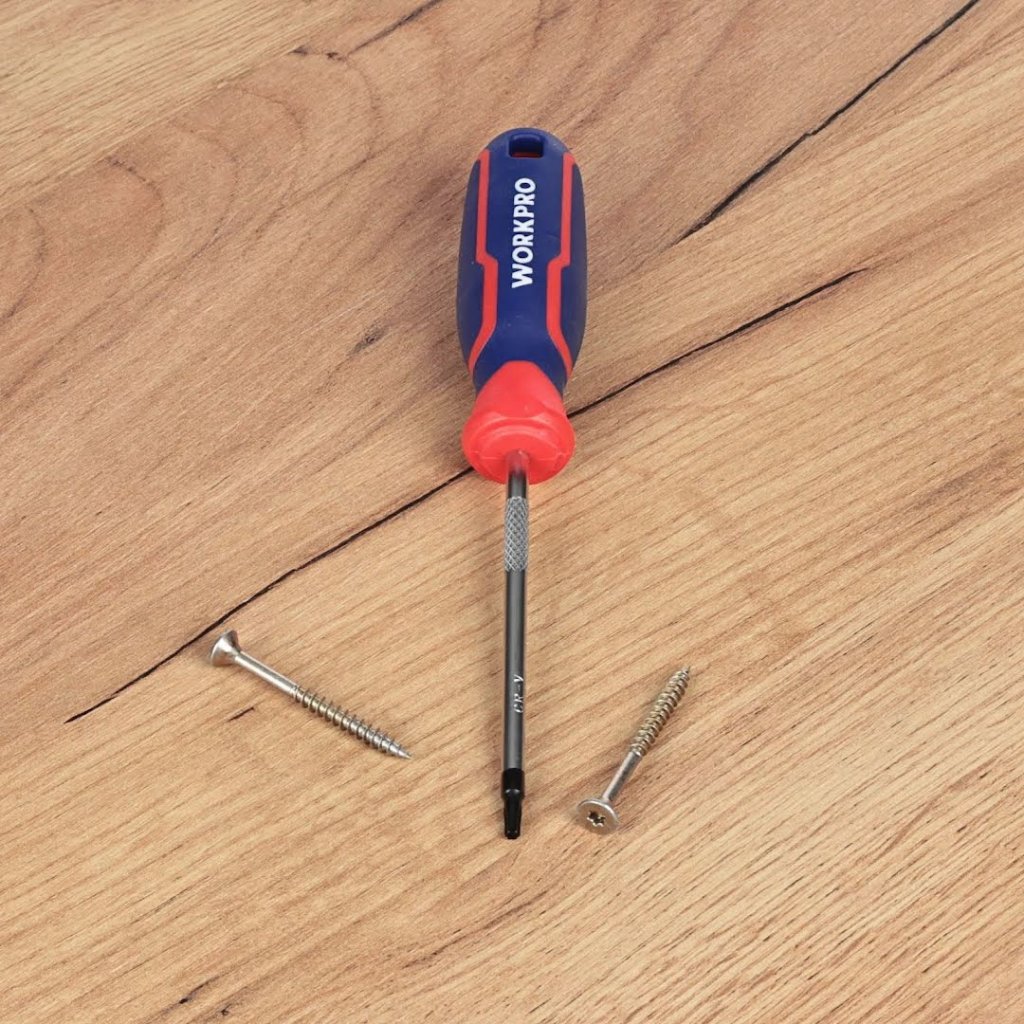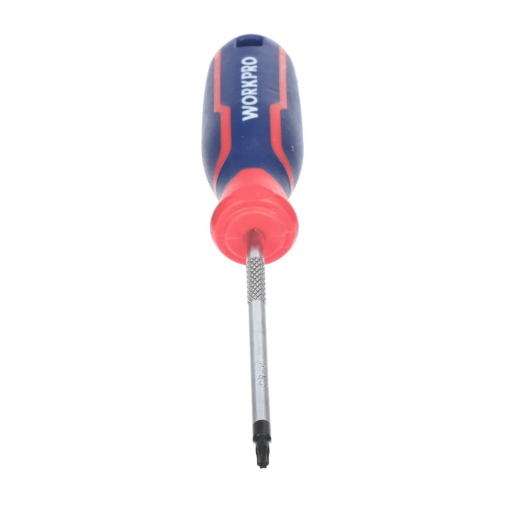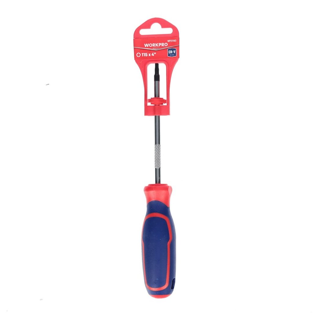 Hvězdicový šroubovák WORKPRO je určen pro torx šrouby T15. Rukojeť zajistí pohodlí a pevný ergonomický úchop, takže je možné použít větší množství síly pro efektivnější kroutivý moment. Délka kovového těla je 101 mm.