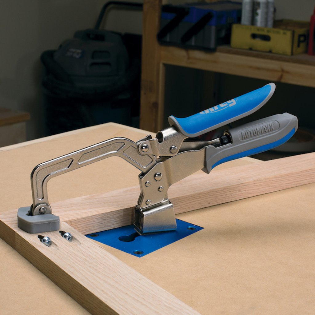 Truhlářská svorka KREG® pro sevření poměrně velkých kusů materiálu v dílně. Snadné ovládání tlaku od velmi slabého až po velmi pevné upnutí.
