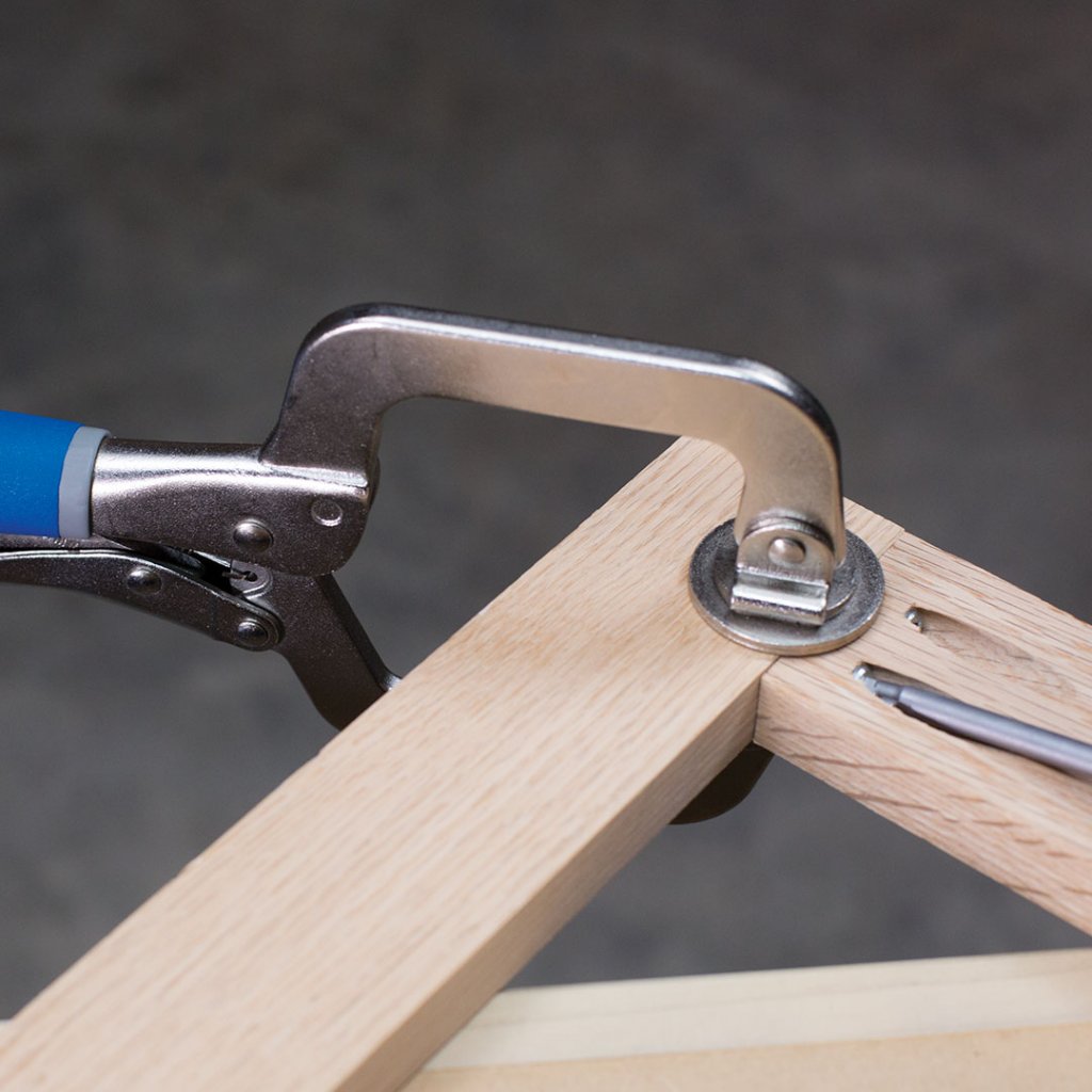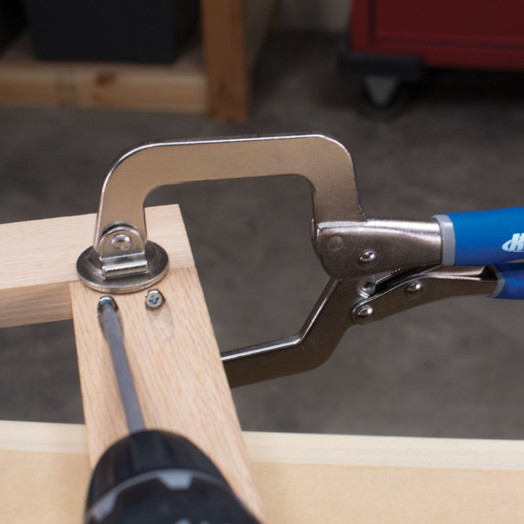 Truhlářská prémiová svorka KREG® pro uchycení materiálu při výrobě. Poskytne vám pomocnou ruku, abyste udrželi přířezy na místě, když utahujete šrouby v kapsových či klasických spojích. Upínací podložka bezpečně uchopí protikus. Díky technologii Automaxx® Auto-Adjust se tato svorka automaticky přizpůsobí materiálu jednoduchým stisknutím rukojetí. Tato šikovná svorka pracuje se všemi druhy materiálů, od tenké překližky až po 50 mm silné přířezy.