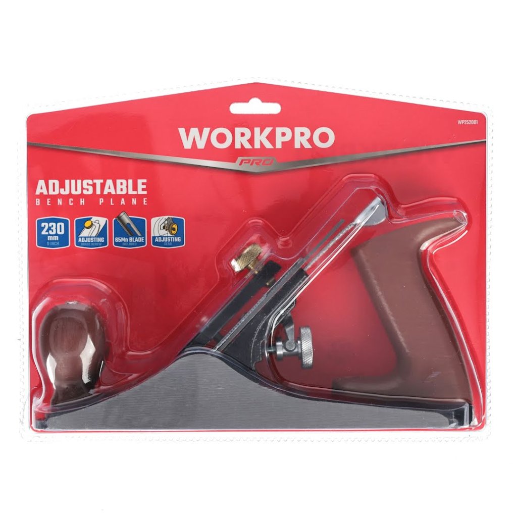 Litinový ruční hoblík WORKPRO evropského stylu s 50 mm čepelí. Nastavení pomocí seřizovacího šroubu.