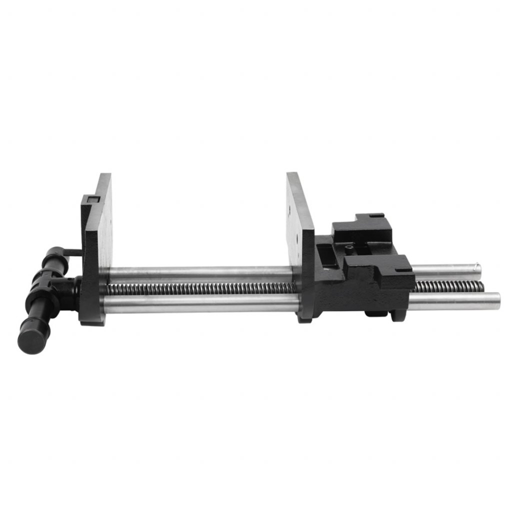 Tento svěrák je určen k připevnění na čelo dřevěných pracovních stolů, hoblic či ponků. Horní čelisti by měly být v jedné rovině s pracovní plochou stolu. Čelisti mají vyvrtané otvory pro připevnění dřevěných podložek (nejsou součástí balení), které ochrání povrch vašeho výrobku. Upínací šroub je chromovaný. Černý ochranný nátěr.