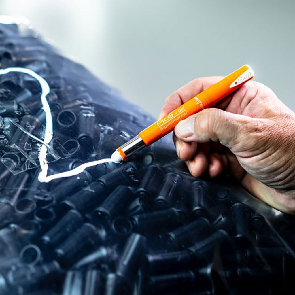 Díky náplni bez chloridů lze značkovač použít i na nerezovou ocel.