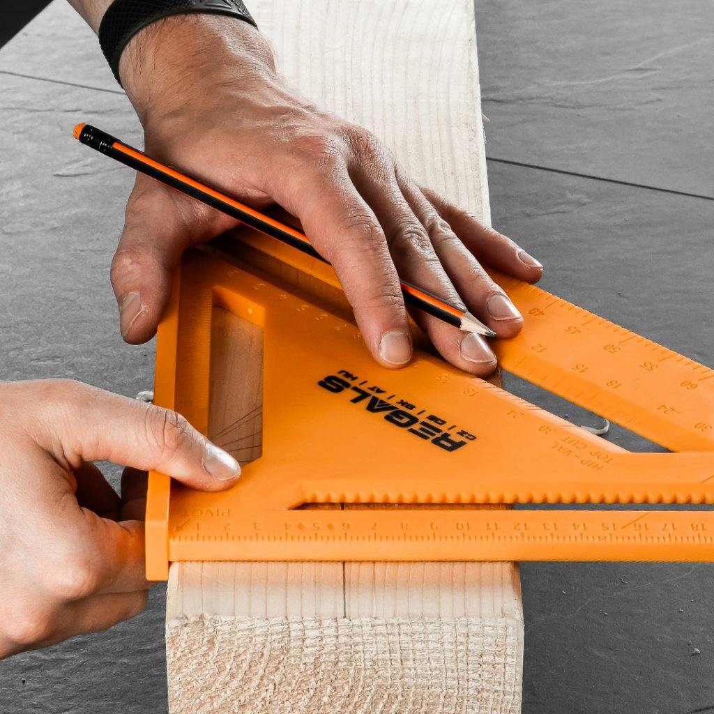 Tesařský úhelník značky REGALS® je ideální pro profesionální řemeslníky. Úhelník je vybaven pro práci v různorodém prostředí a umožňují tak snadno dokončit více úkolů. Pokročilé konstrukční prvky, které poskytují maximální funkčnost, odolá štěrku a prachu v drsném terénu a každodenímu používání. Tělo z odolného plastu s přesně vyznačenou stupnicí a úhly v metrické soustavě.