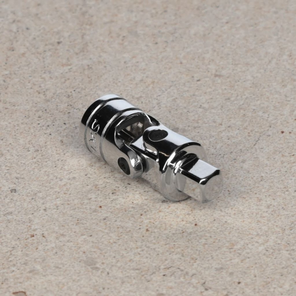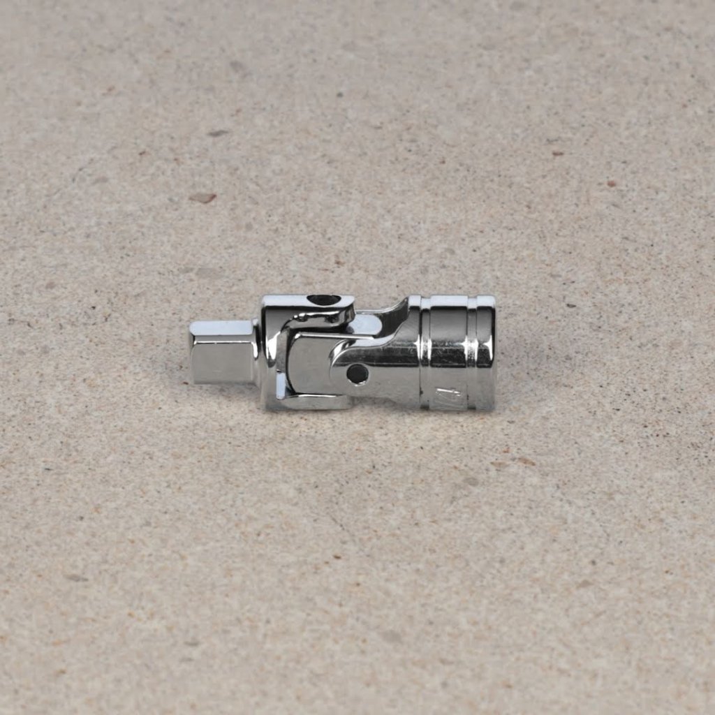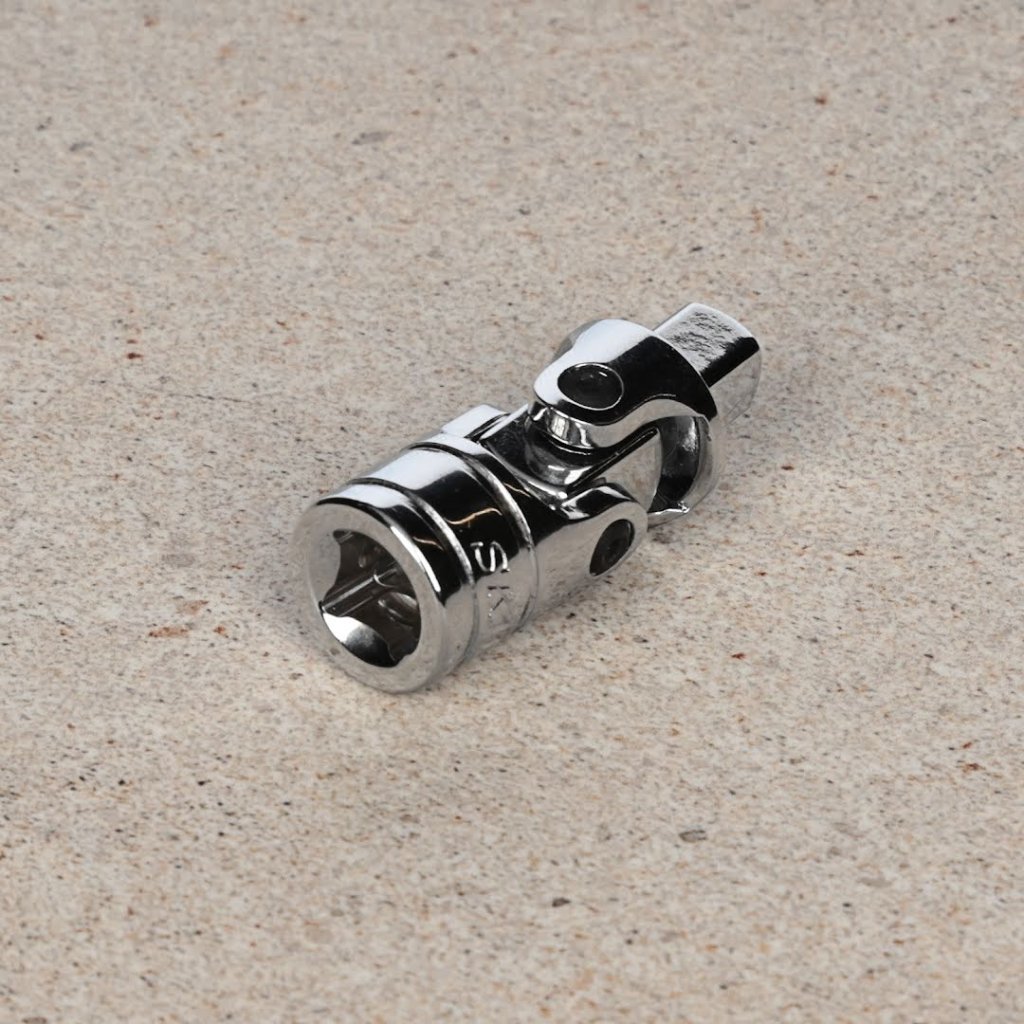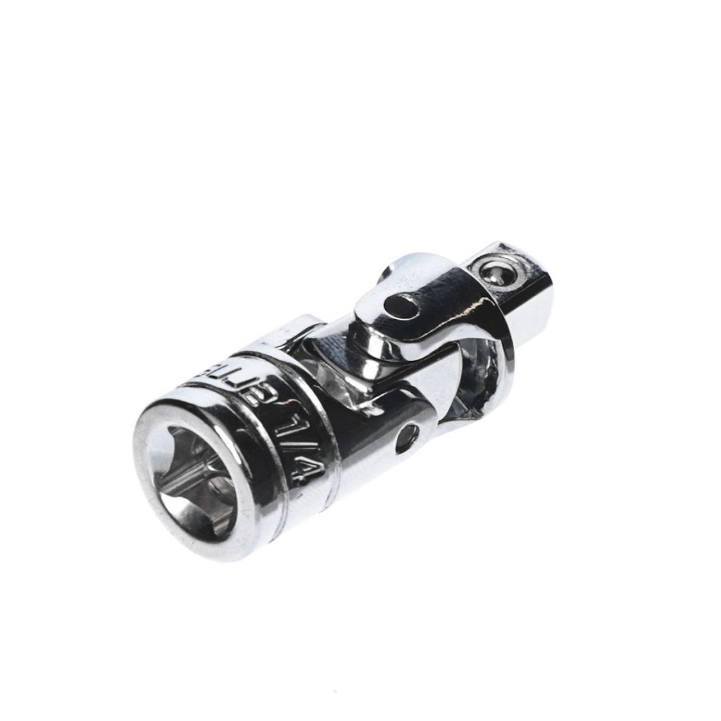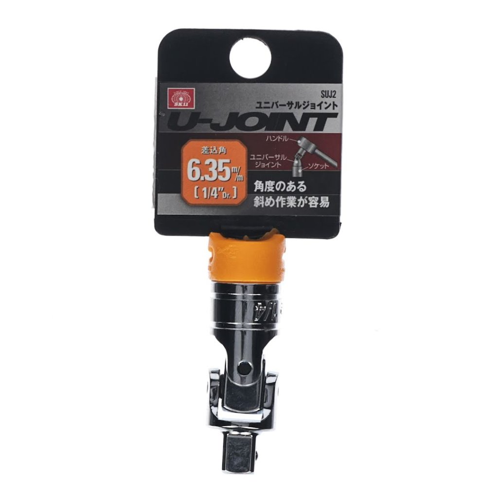 Univerzální kloub s pohonem 6,35 mm od značky SK11, model SUJ2, je nezbytný pro práci v úzkých prostorech. Velikost pohonu 6,35 mm (1/4 palce) se snadno připojuje mezi rukojeti a nástavce. Funkce otočného kloubu ve dvou osách umožňuje hladkou rotaci a provoz z různých úhlů. Tento kompaktní nástroj je ideální pro složité úkoly, jeho rozměry jsou 13 x 35 x 13 mm a váží pouze 29 g. Není vhodný pro použití s elektrickým nářadím, jako jsou rázové utahováky.