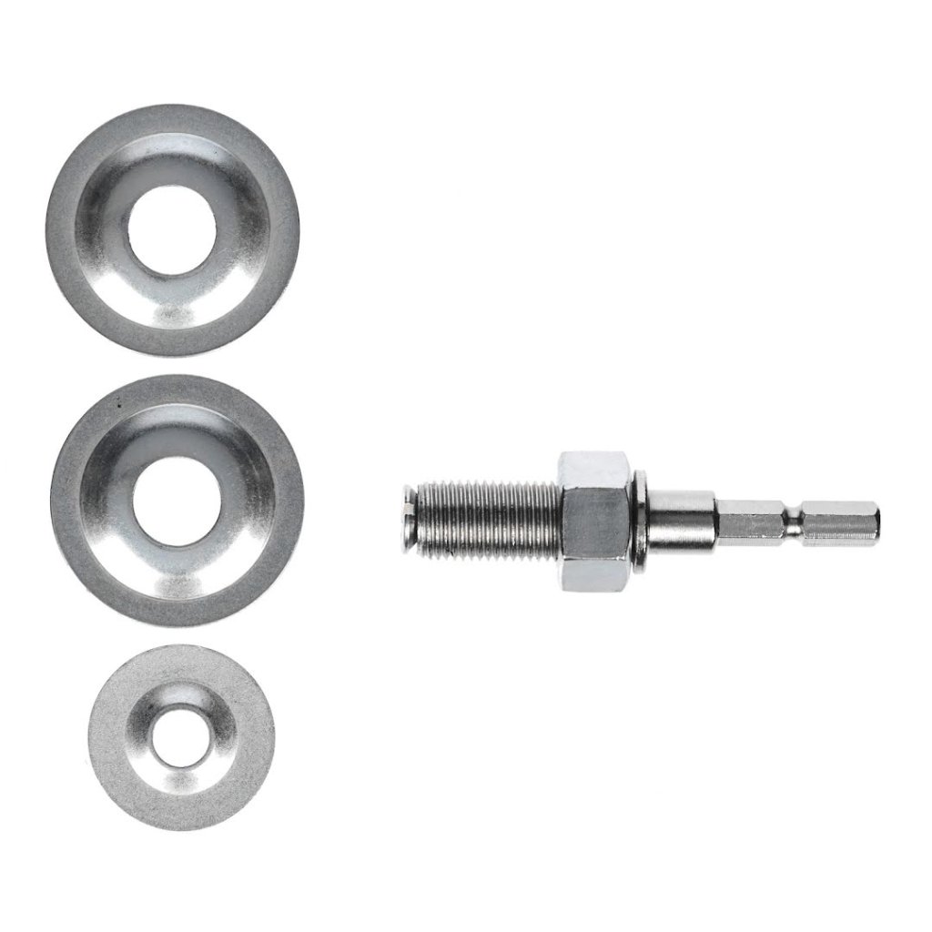 Sada SK11 je všestranný nástavec navržený pro elektrické vrtačky a rázové utahováky. Usnadňuje leštící a brusné práce; je ideální pro montáž brusných kotoučů, leštících kotoučů a drátěných kartáčů. S průměrem šestihranu 6,35 mm a průměrem otvoru 12,7 mm tento nástavec podporuje různé nástroje a zajišťuje pevné uchycení pro efektivní práci. Pro optimální výkon používejte při rychlostech pod 3000 ot./min.