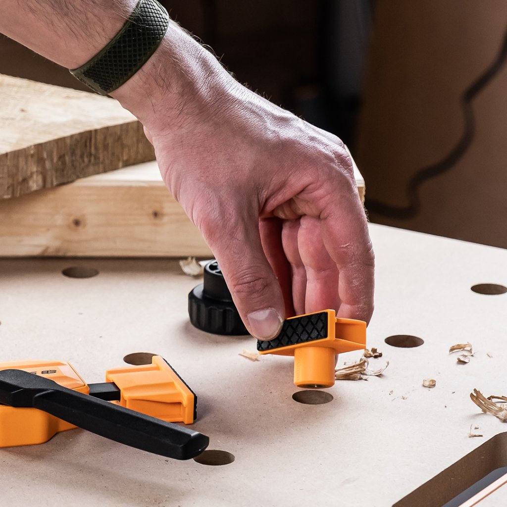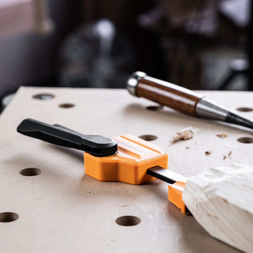 Pomocí těchto svorek od značky STRONGBOLD® si snadno připevníte materiál k jakémukoliv pracovnímu stolu s otvory o průměru 20 mm. Odolná ale lehká svorka, která je ideální pro menší projekty do velikosti materiálu maximálně 300 mm. Čelisti jsou opatřeny gumovou ochrannou patkou. Páková mechanika.