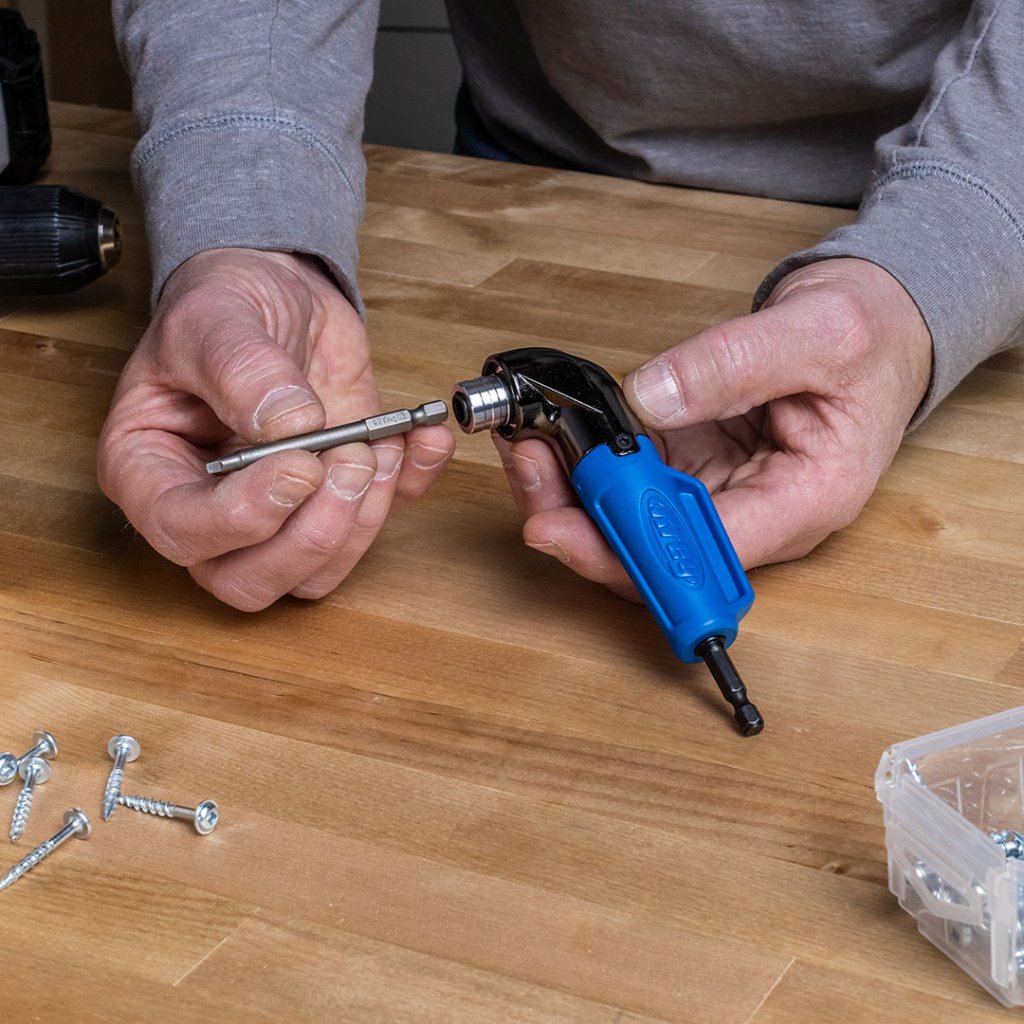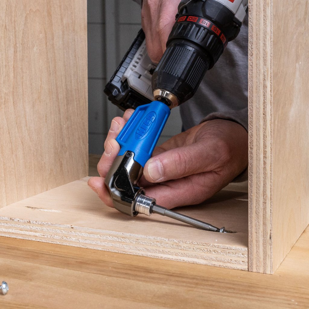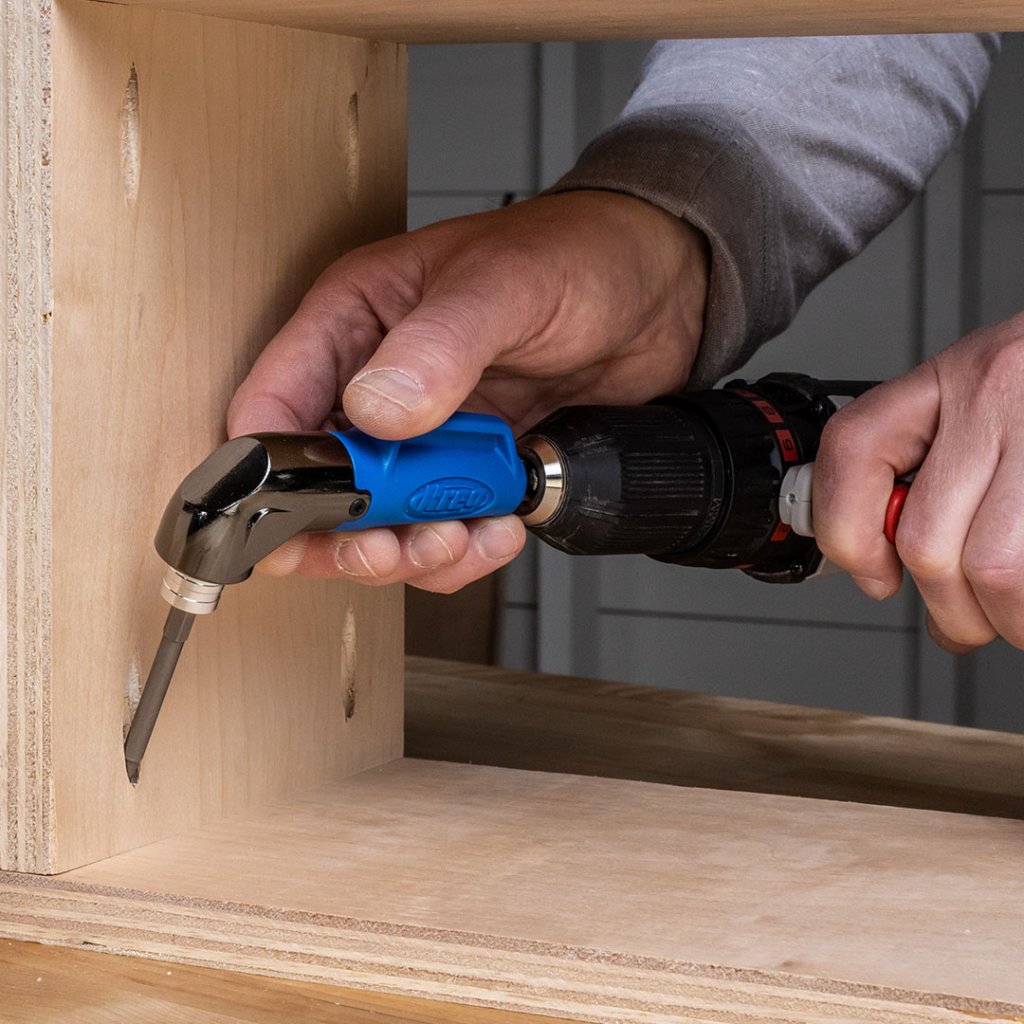 Kapesní utahovací nástavec KREG® promění jakoukoliv vrtačku na šroubovák s úhlem 90°. Tento kompaktní vrtací nástavec vám umožní zašroubovat šrouby do míst, kam byste se s vrtačkou normálně nedostali. Přiložený 3" bit se čtvercovým koncem má magnetický hrot, který se přichytí do hlavy šroubu s kapsou a nevyklouzne – takže můžete šrouby zašroubovat s jistotou, ať už jsou kdekoli. Tento nástavec je kompatibilní se všemi šestihrannými stopkovými bity, díky tomu je vhodný pro větší využití, než jen pro šrouby s kapsami. Díky ergonomickému designu se nástavec snadno drží na místě jednou rukou, zatímco druhou rukou ovládáte vrtačku. Má také odolnost proti nárazu pro použití s rázovým utahovákem. Kdykoli potřebujete utáhnout šrouby ve stísněných prostorech, utahovák od KREG® vám s tím pomůže.