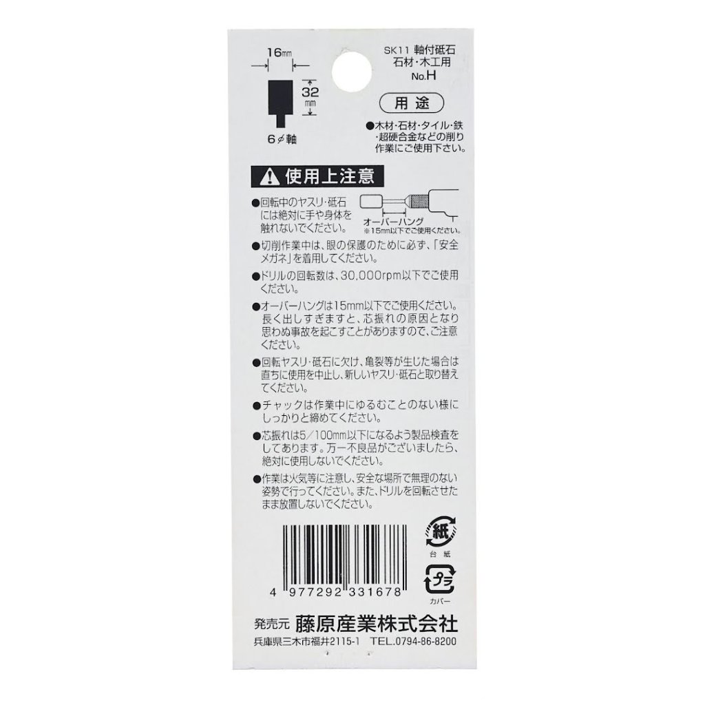 Brusný kámen SK11 No.H je ideální pro broušení dřeva, kamene, dlaždic, železa a slinutých karbidů. Nástroj je navržen pro použití s elektrickými vrtačkami a pneumatickými bruskami. Má stopku o průměru 6 mm a brusná část měří 16 mm v průměru. Pro optimální výkon zajistěte, aby převis byl 15 mm nebo méně a aby rychlost otáček vrtačky nepřesáhla 30000 ot/min.