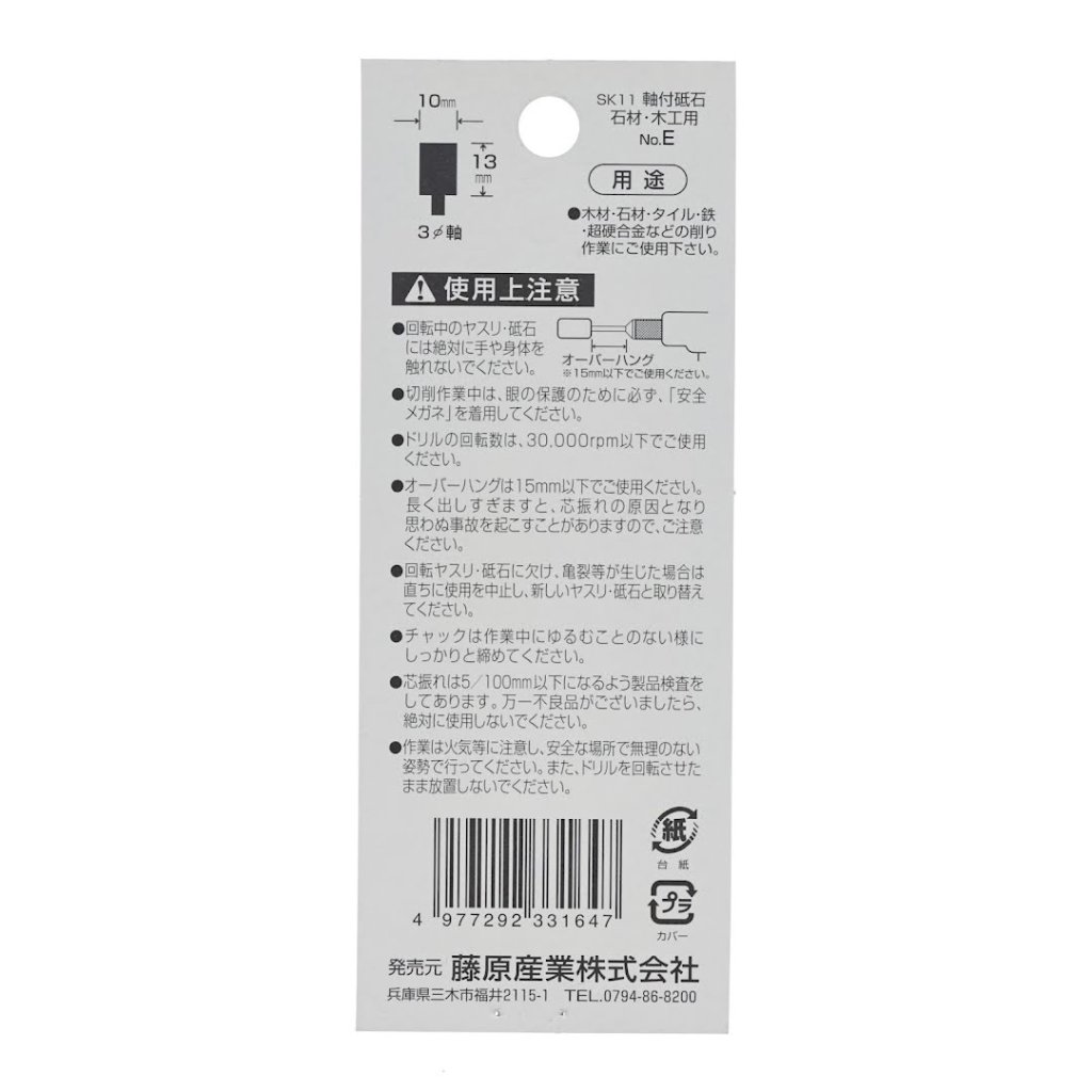 Brusný kámen SK11 No.E je univerzální nástroj pro broušení dřeva, kamene, dlaždic, železa a karbidu. Je kompatibilní s elektrickými vrtačkami a pneumatickými bruskami. Má průměr stopky 3 mm pro bezpečné upevnění a efektivní výkon. Brusný kámen No.E je ideální pro detailní a precizní práci a zajišťuje hladký a profesionální povrch. Maximální doporučené otáčky 30 000 RPM a méně. Zrnitost GC80P.