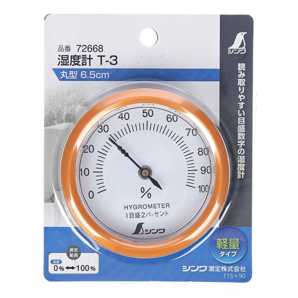 SHINWA hygrometr T-3, je lehký, kulatý hygrometr s průměrem 6,5 cm, ideální pro měření vlhkosti v domácnostech, třídách, dílnách a kancelářích. Jeho design obsahuje snadno čitelná čísla stupnice, což zajišťuje přesné monitorování. S rozměry produktu 65 mm na šířku a výšku a 19 mm na hloubku a váhou pouhých 30 g je kompaktní a přenosný. Hygrometr nabízí přesnost měření ±5% v rozmezí 35-75% a ±10% pro ostatní hodnoty, pokrývá měřicí rozsah od 0 do 100% s 2% intervaly stupnice.