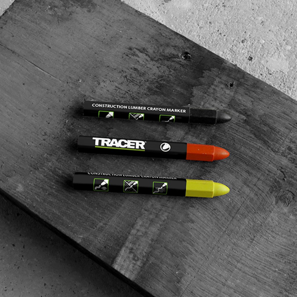 Tyhle robustní tužky od firmy TRACER se dobře drží i v pracovních rukavicích - jsou dost široké a mají hrany jako kovový krajon. Základní červená barva, která dobře přilne k mnoha povrchům za sucha i za mokra.