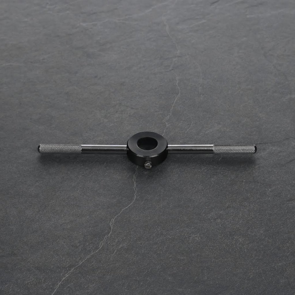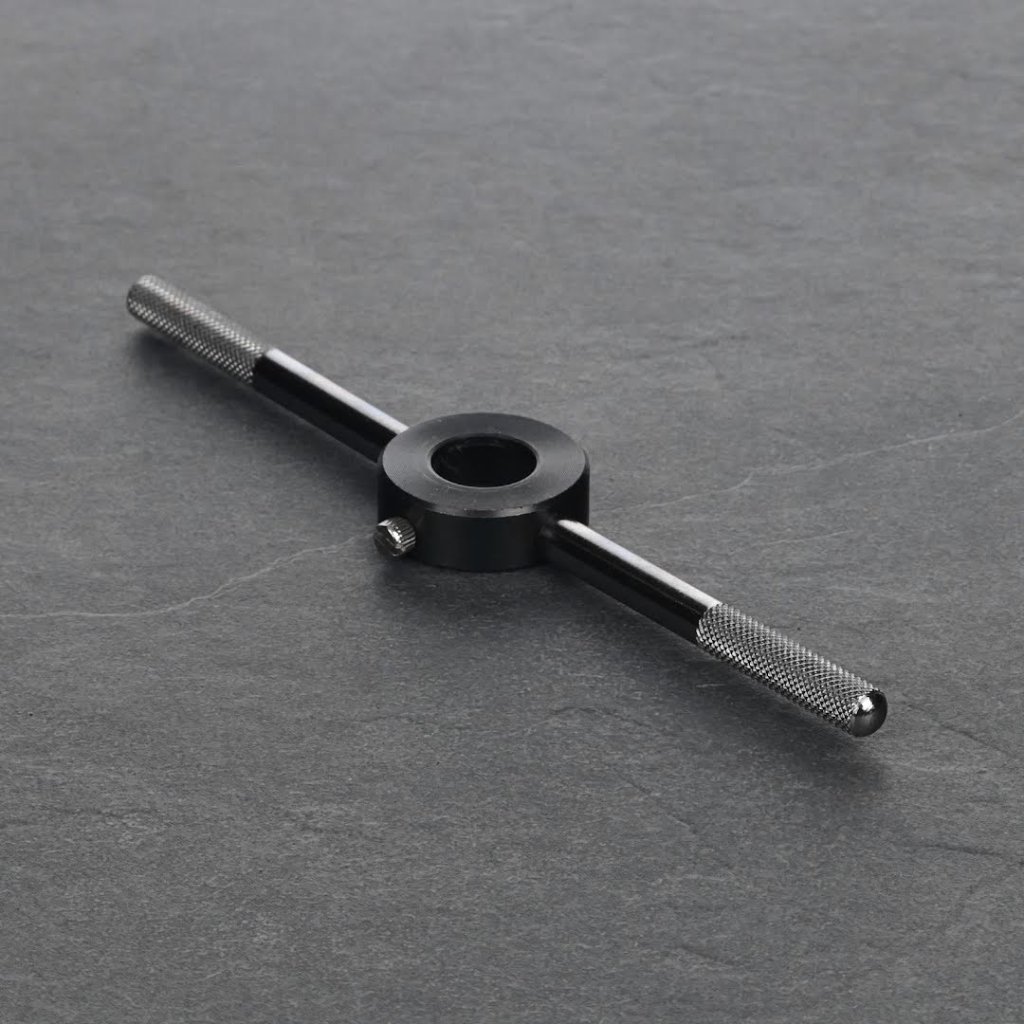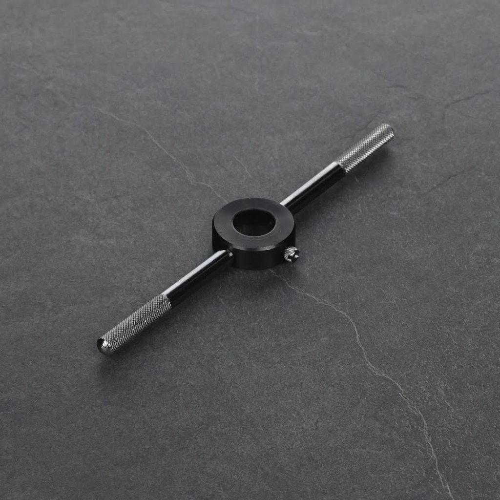 Vratidlo SK11 s rukojetí je speciálně navržené pro 25 mm závitová očka, ideální pro závitování na obecných ocelových materiálech. Díky své lehké konstrukci umožňuje snadné a přesné ruční závitování. Ergonomický design zajišťuje, že závitnice snadno zakousne do pracovního materiálu, což je ideální pro ruční otáčení.