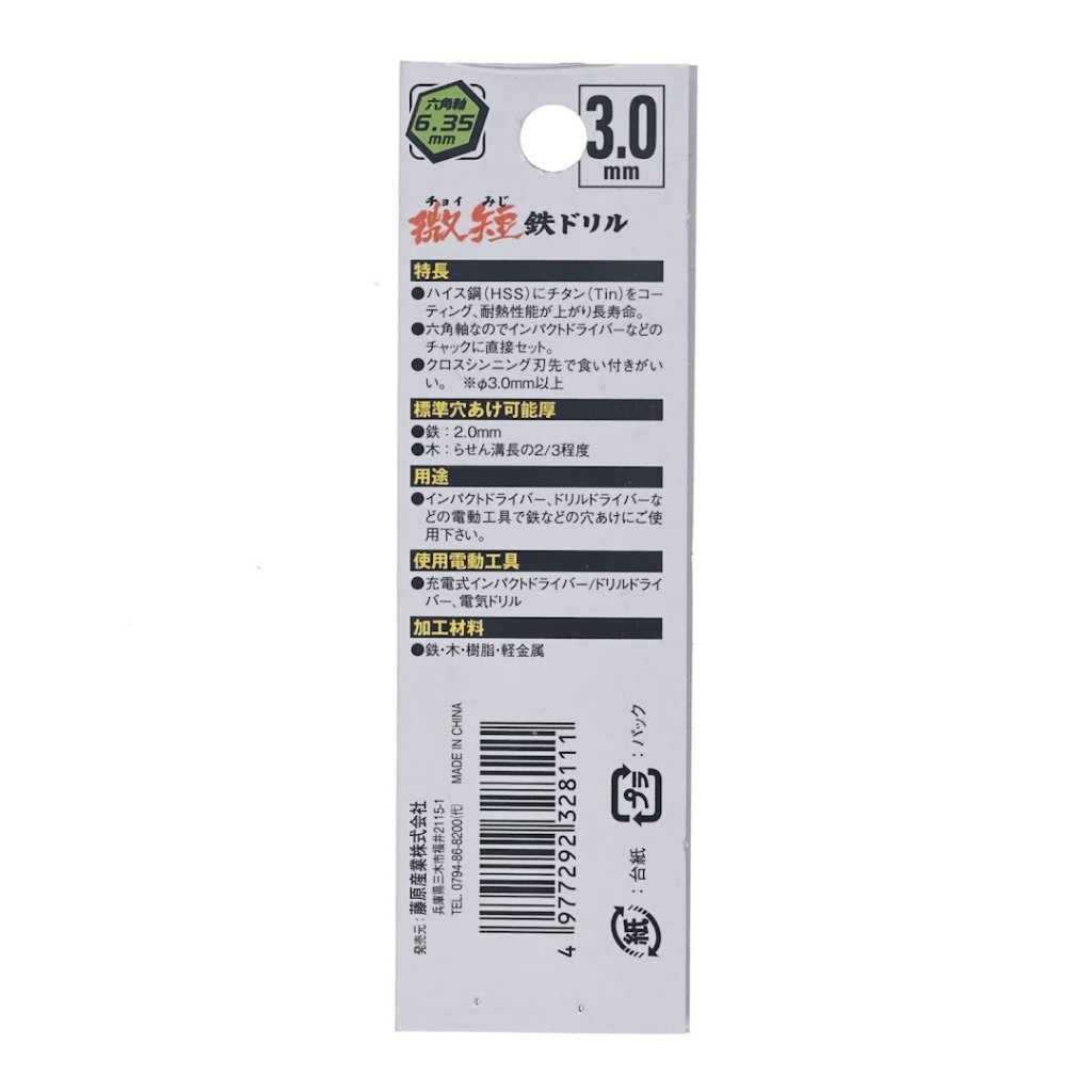 Vrták SK11 je navržený pro všestranné použití. Jeho průměr 3 mm a 6,35 mm šestihranný dřík lze snadno nasadit přímo do rázových utahováků a vrtaček. Vrták je vyroben z rychlořezné oceli (HSS) a potažen titanem (TiN) pro zvýšenou odolnost a tepelnou odolnost. Je vhodný pro vrtání do železa, dřeva, pryskyřice a lehkých kovů, což z něj činí ideální nástroj pro různé projekty.