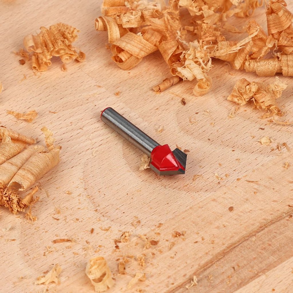 Wolfram-karbidový frézovací bit SK11, model SRB-24, je určen pro přesné drážkování a srážení hran dřeva. Tento V-drážkový frézovací bit má vysokou tvrdost karbidové špičky pro výjimečnou odolnost. Má 6 mm válcovou stopku a pracuje pod úhlem 90 stupňů.