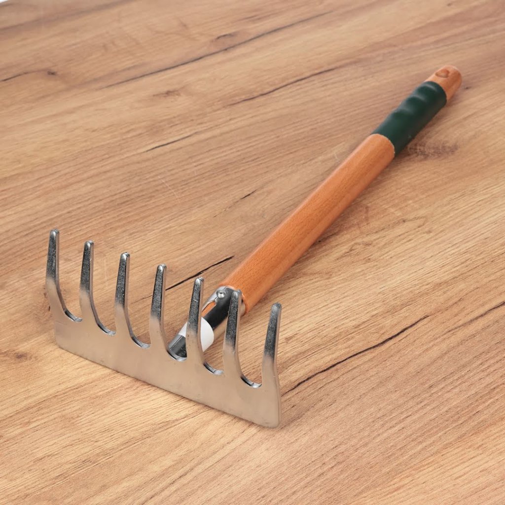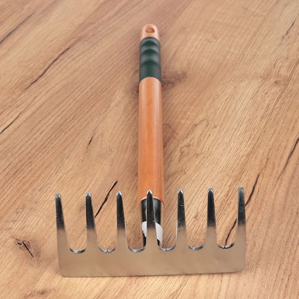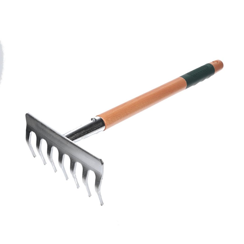 Zahradní hrábě se sedmi hroty SENKICHI, model SGT-8, jsou univerzálním nástrojem pro efektivní vyrovnávání půdy a provzdušňování. Jejich pohodlná rukojeť zajišťuje snadné použití během zahradních prací. Díky sedmi pevným hrotům jsou tyto hrábě odolné a účinné. S rozměry 175 x 435 x 95 mm váží přibližně 480 g a jsou kompaktní, ale výkonné.
