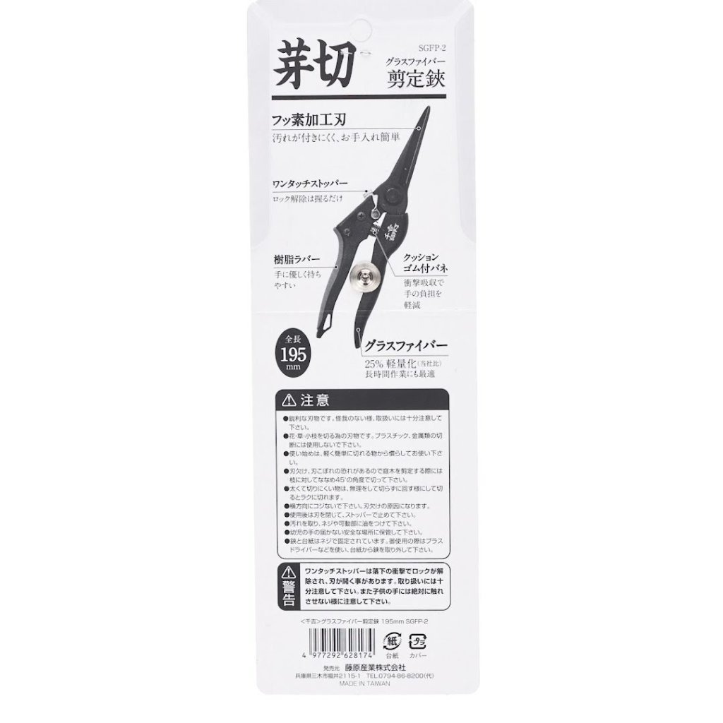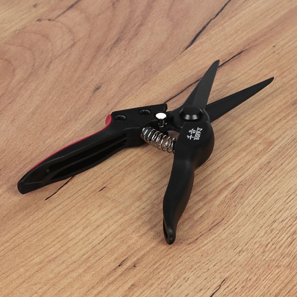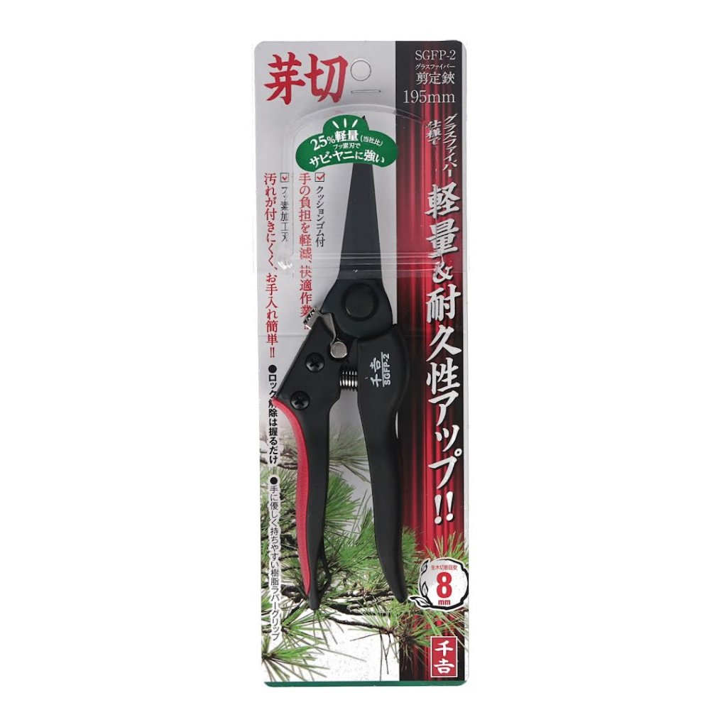 Zahradní nůžky SENKICHI, model SGFP-2, jsou odborně navrženy pro prořezávání a zastřihování. Disponují lehkými laminátovými rukojeťmi, které jsou přibližně o 25 % lehčí než předchozí modely, což snižuje fyzickou zátěž při používání. Čepelky s fluorovou vrstvou odolávají míze a špíně. Jednodotykový zámkový mechanismus umožňuje rychlou a snadnou obsluhu.