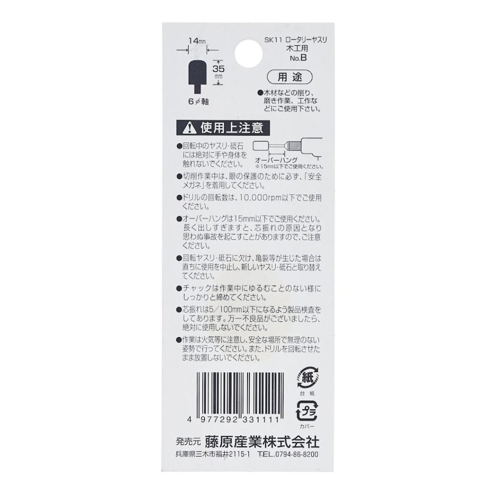 Rotační rašple SK11 s válcovou hlavou No.B je nezbytným nástrojem pro tvarování, broušení a leštění dřeva. Určena pro použití s elektrickými vrtačkami a pneumatickými bruskami, tato kulová fréza má průměr stopky 6 mm a průměr brusného kamene 14 mm, což ji činí ideální pro precizní dřevoobráběcí práce. Pracujte při maximální rychlosti 10000 ot/min pro optimální výkon a bezpečnost.