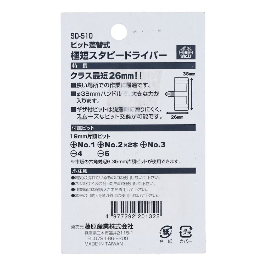 Šroubovák SK11, model SD-510, je navržen pro přesnou práci v těsných a uzavřených prostorech. Šroubovák má 38 mm širokou rukojeť pro optimální točivý moment a kontrolu. Obsahuje pět vyměnitelných bitů, které jsou vybaveny texturovaným povrchem, aby se zabránilo sklouznutí při výměně bitů.